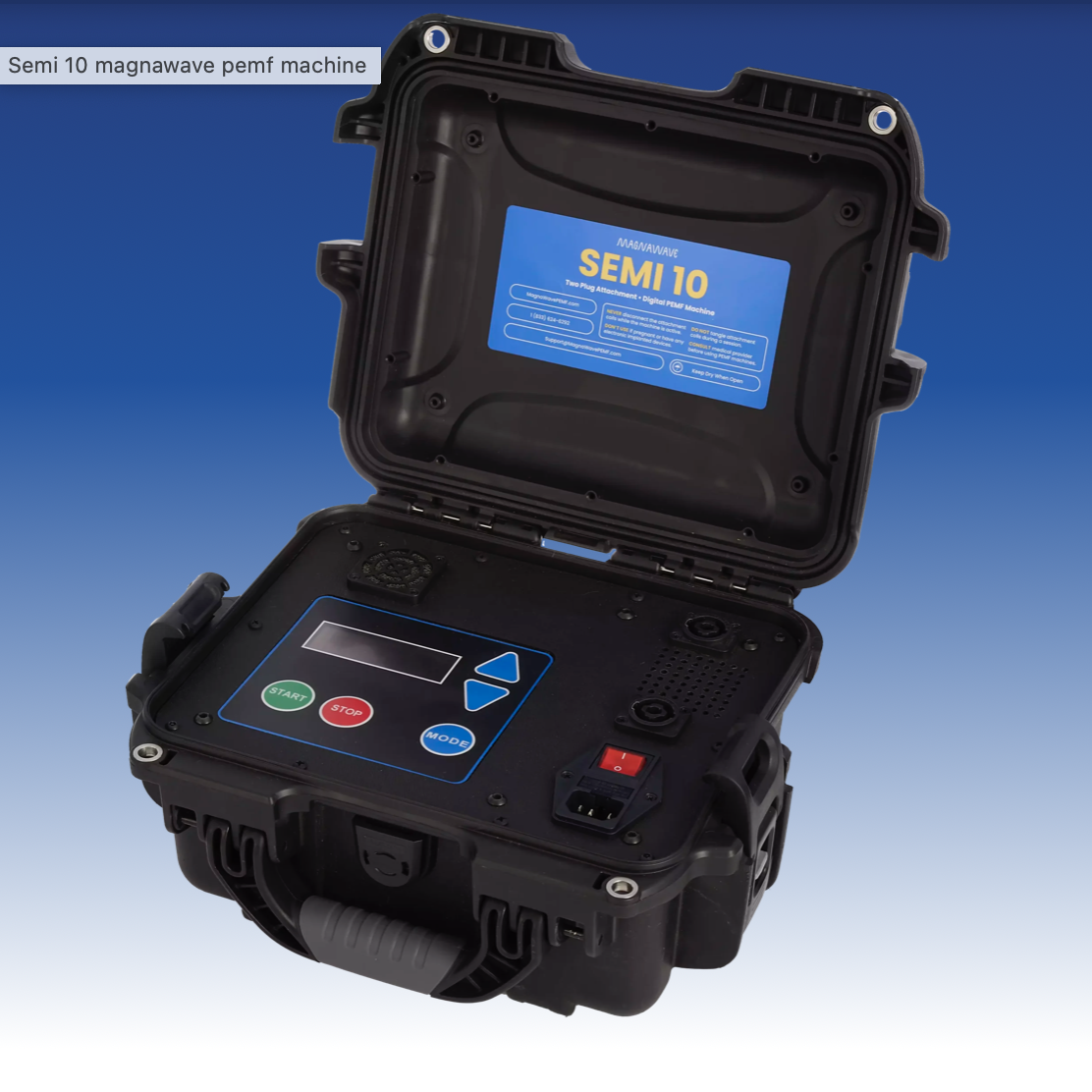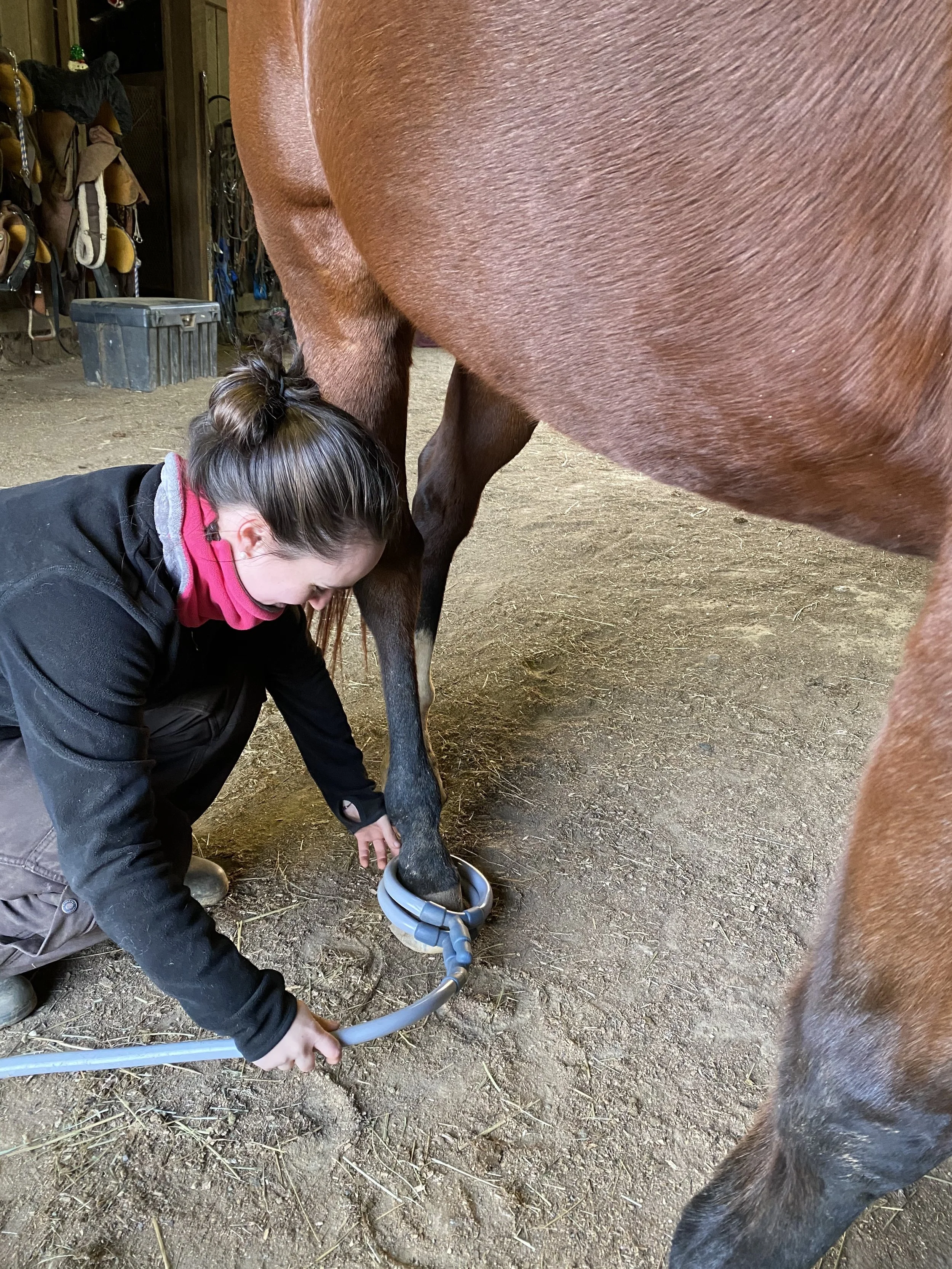 Our main machine is a Magnawave Semi 10. We LOVE our magnawave! This machine lets us work on horses, people and dogs with all size loops. This machine is made in the USA by one of the industry’s leading companies. If you want to learn more about magnawave machines please click the button below to go to their machine page.